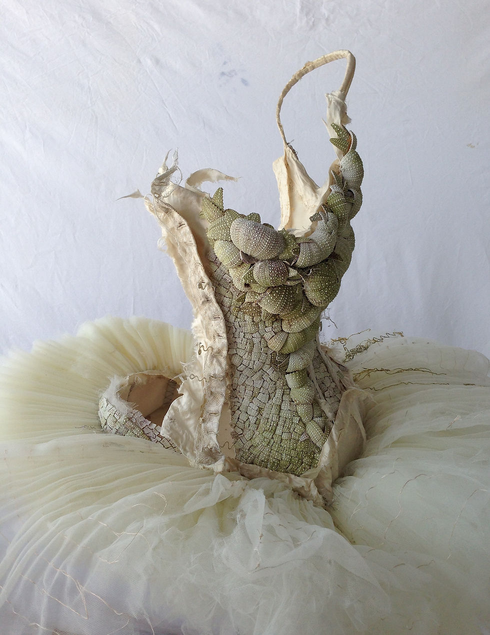 Sea Urchin shells (collected on the coast of Maine), deconstructed Victorian bodice,